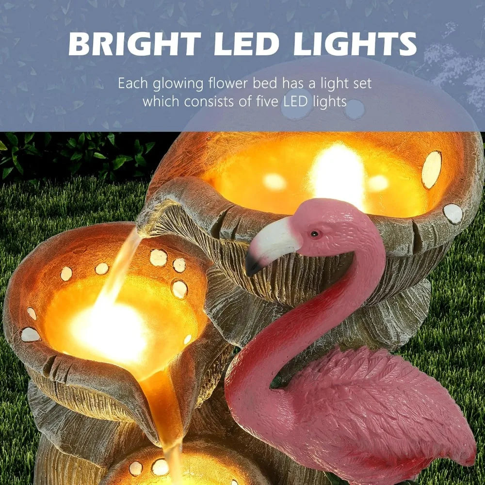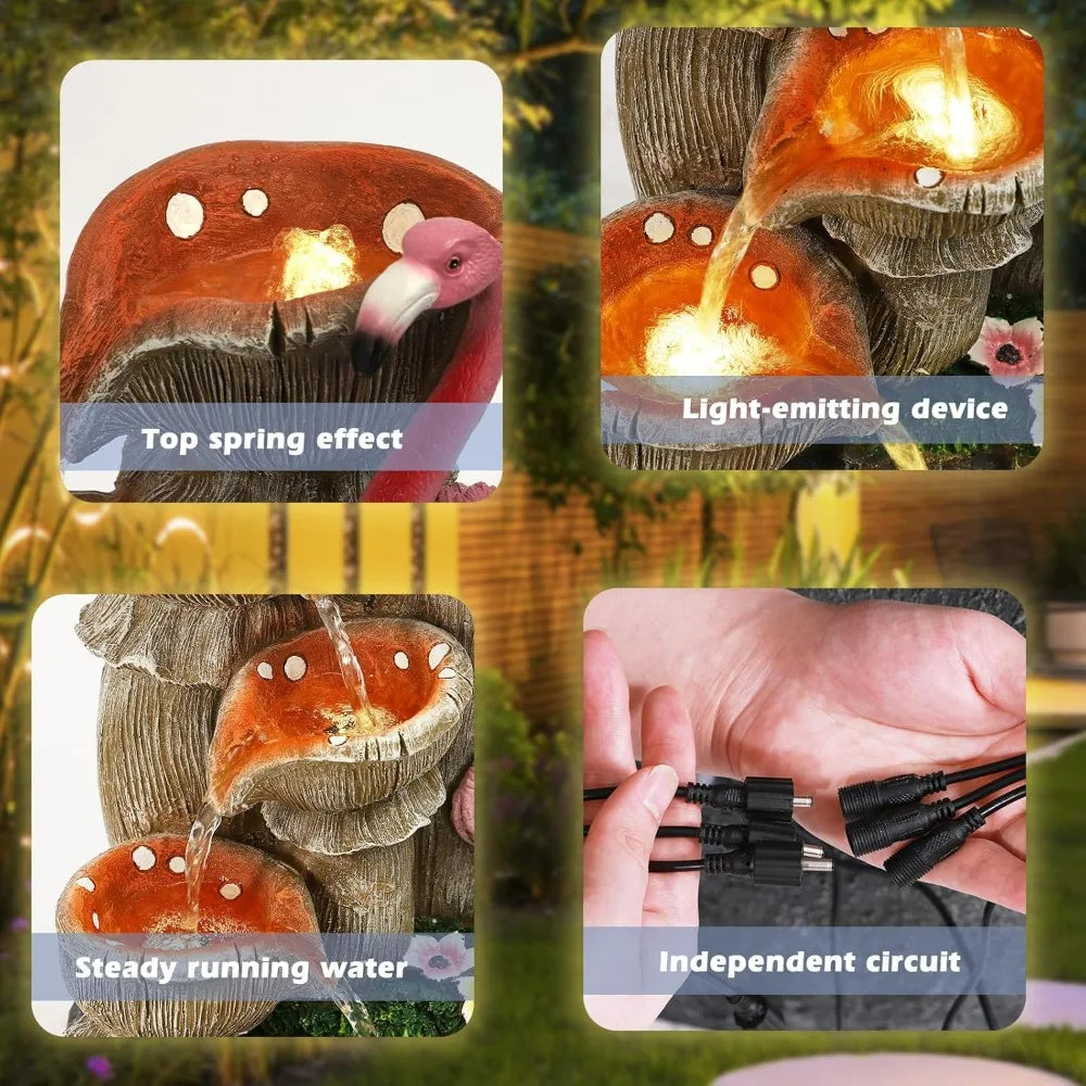 - Interesting Simulation Design Provides Ornamental Value: Using a variety of stylized combination of flamingo, mushrooms, flowers and plants to create a natural water feature, which can be placed in the garden, deck, backyard, patio and play a good role in decorating