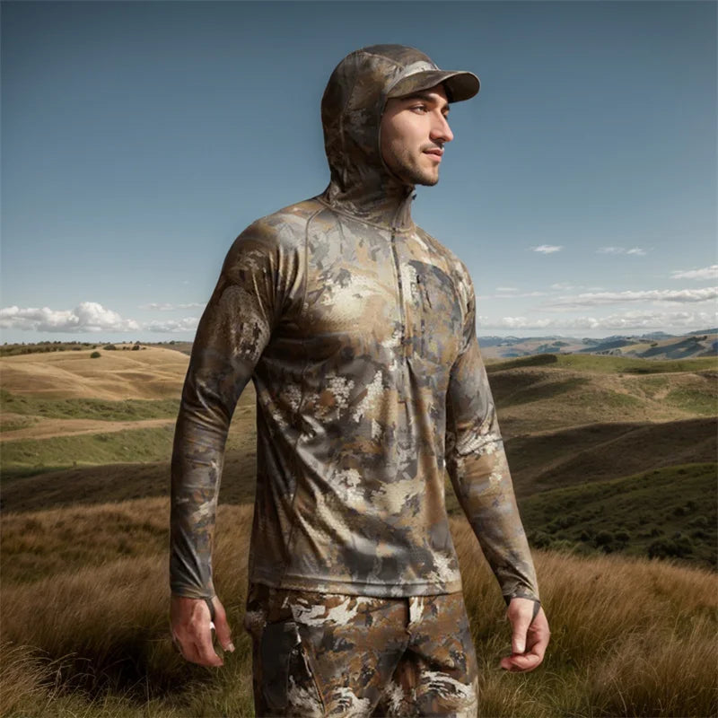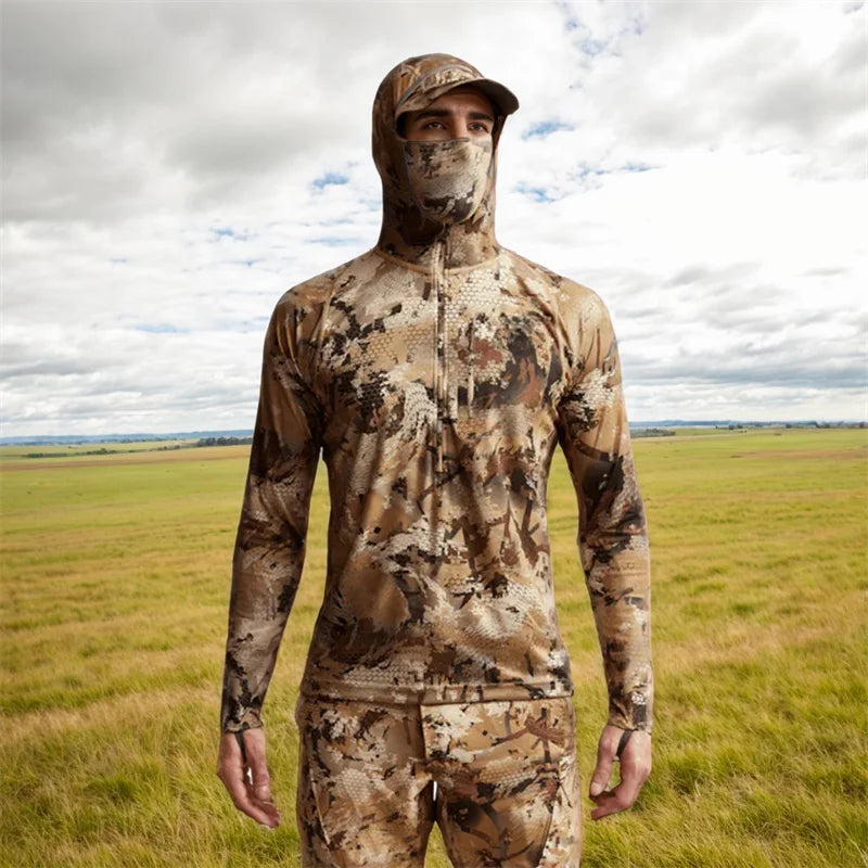We found that the majority of base layers offered zero technical features, requiring hunters to carry additional pieces of gear into the field to meet the demands of the pursuit. Our solution was to create a high-performance next-to-skin layer that includes technical features to improve concealment and utility. By optimizing breathability and moisture management and adding features not found in traditional base layers, the Core Lightweight Hoodie can be used as a standalone piece in hot weather or as the foundational baselayer into any AINDA system.