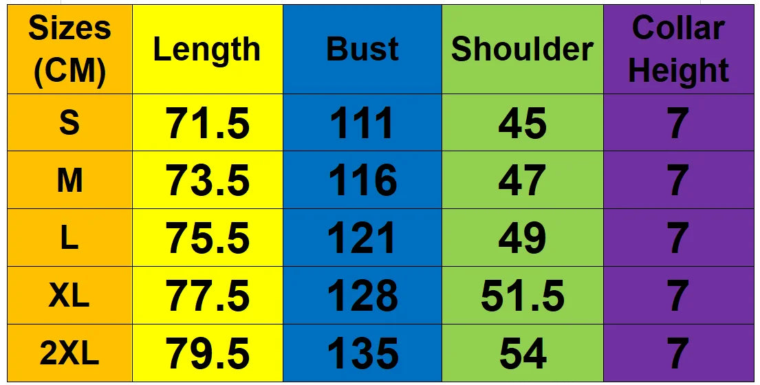 size_info: {"sizeInfoList":[{"length":{"cm":"71.5","inch":"28.15"},"size":"S","vid":-30},{"length":{"cm":"73.5","inch":"28.94"},"size":"M","vid":-31},{"length":{"cm":"75.5","inch":"29.72"},"size":"L","vid":-32},{"length":{"cm":"77.5","inch":"30.51"},"size":"XL","vid":-33},{"length":{"cm":"79.5","inch":"31.30"},"size":"2XL","vid":-34}]}