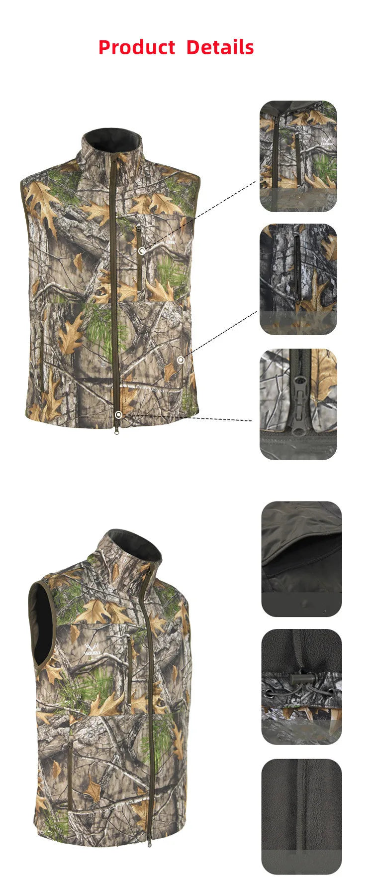 Autumn Winter Extra Thick Keep-Warm Men's Bionic Camouflage Hunting Vest Wind Waterproof Outdoor Sports Hiking Climbing Vest