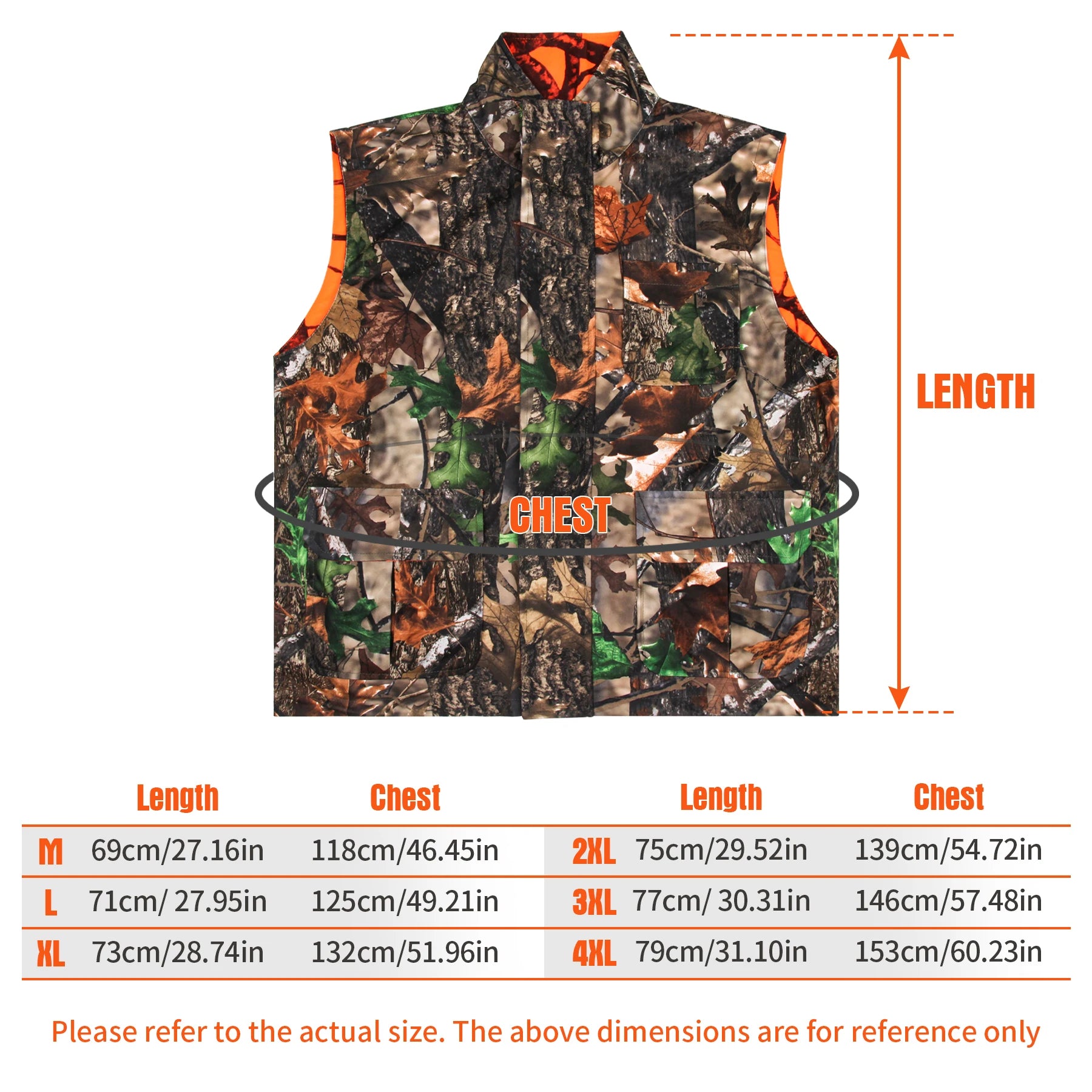 GUGULUZA Orange Camo Hunting Vest Fleece Game Waistcoat Two side Vest Sleeveless Safety Vest Outdoor Hiking Fishing Hunting