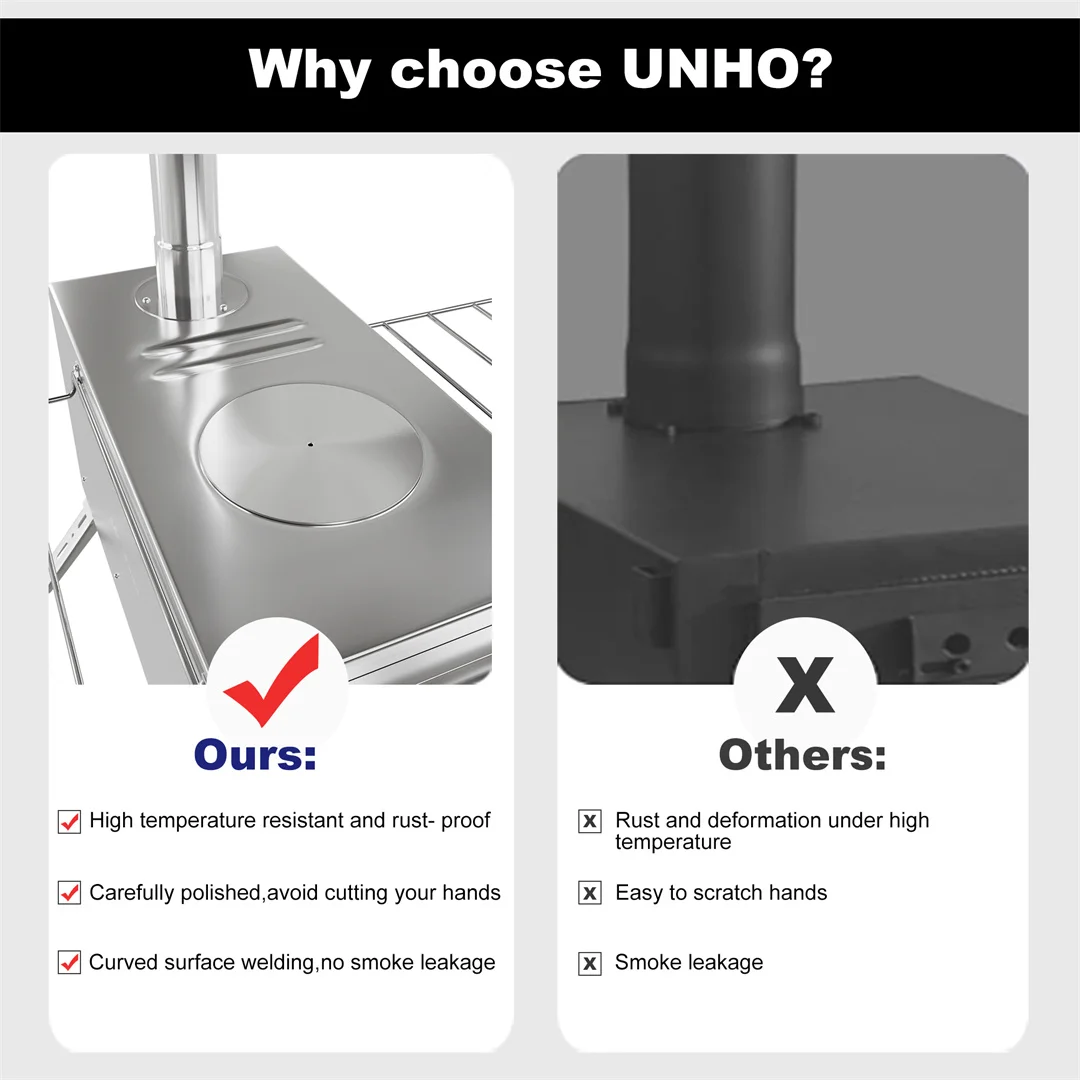Hot Tent Stove, unho Wood Burning Stove, Portable Wood Stove with 6 Stainless Chimney Pipes for Outdoor Heating & Cooking