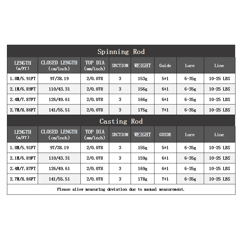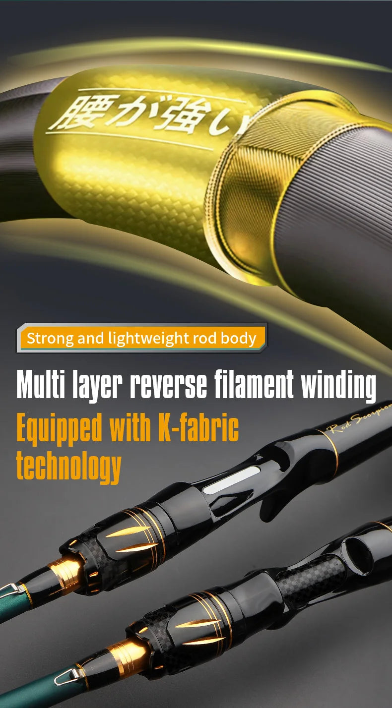 ROLLFISH 2 Tips Spinning/Casting Lure Fishing Rod Carbon Fiber Fishing Rod 1.8-2.7M for Saltwater Freshwater Bass Fishing