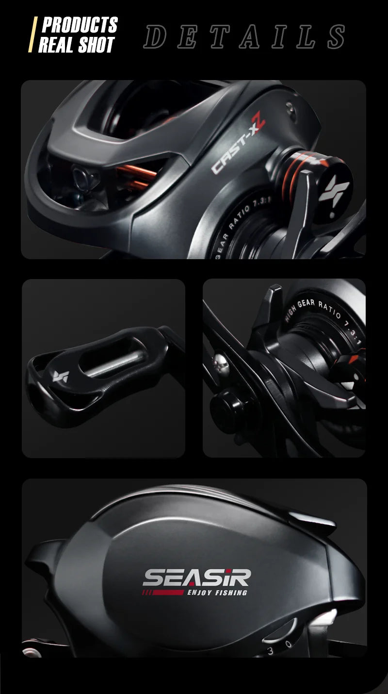 SEASIR Cast X2 Baitcasting Reel 7.3:1 Hybrid Ceramic Bearing Carbon Fiber Washer Dual Bearing System N52 Brake Fishing Reels