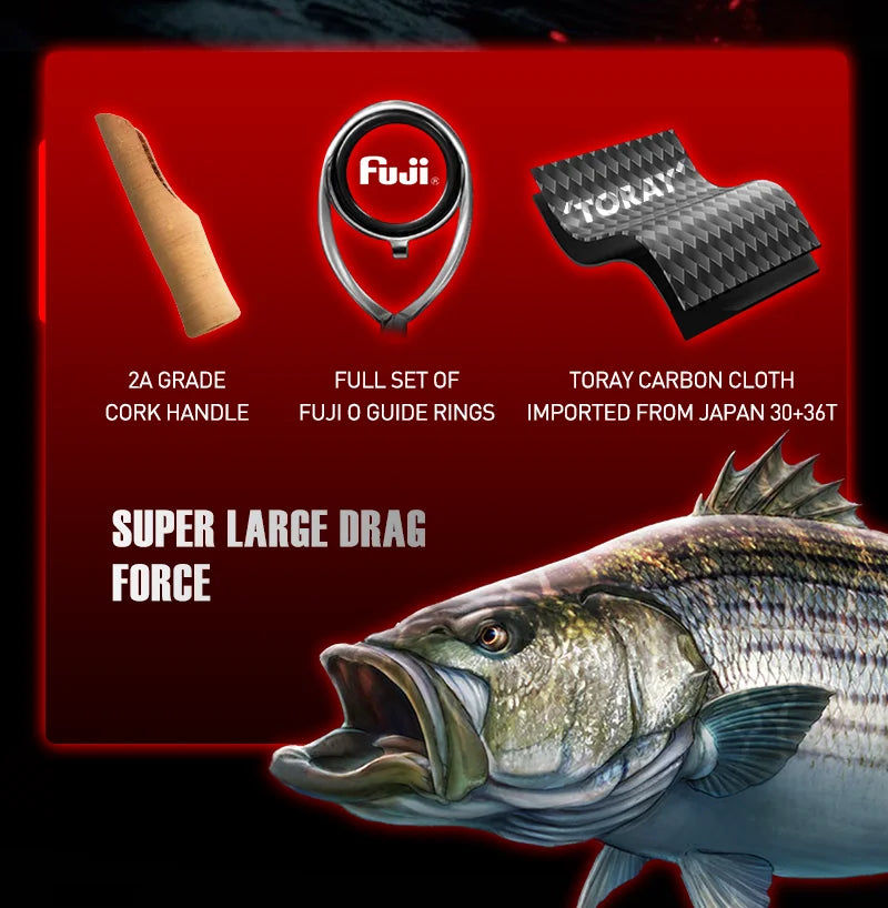 Seasir Repeater Spining&Casting Fihsing Rod Fuji-O Guide Rings Carbon High Sensitivity 2A Grade Cork Handle 6Kg Super Drag