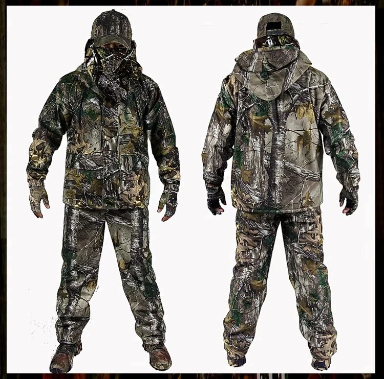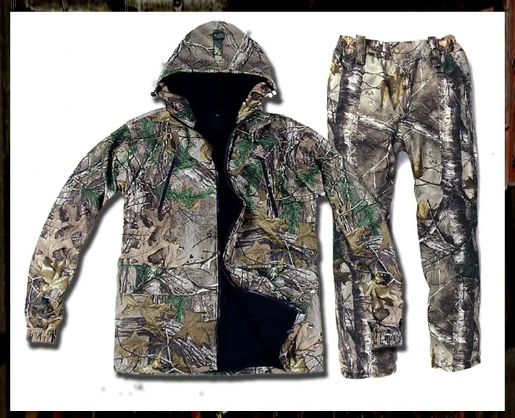 Winter Outdoor Fishing Hunting Clothing Set Camo Fleece Warm Waterproof Jacket Pants Tactical Military Uniform Ghillie Suits Plus size man